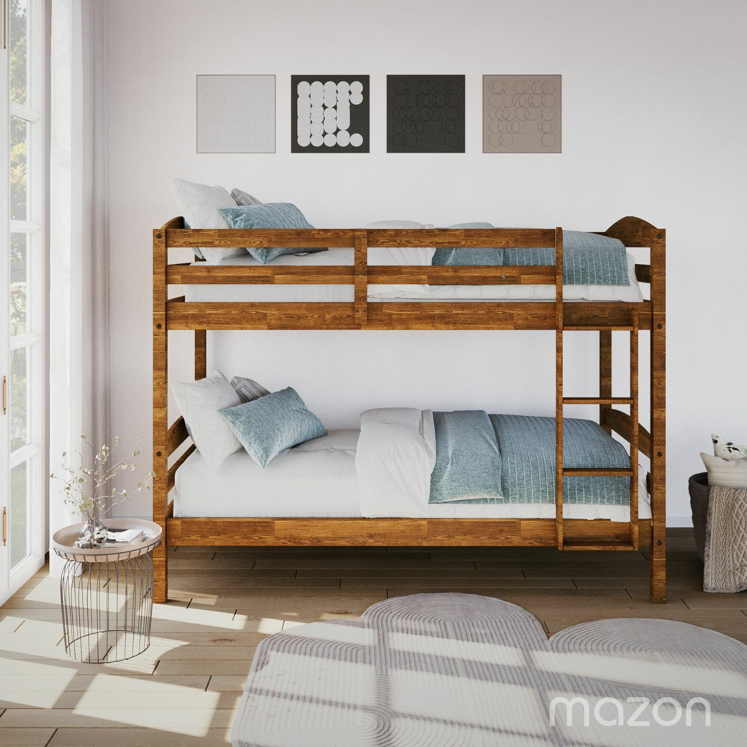 The Mazon Bunk bed set in Single has a wood grain finish, the perfect choice for both functionality and aesthetic appeal. Crafted with durability in mind, these bunk beds offer a space-saving solution with a touch of natural elegance. The wood grain finish adds warmth and character to any room, making it a timeless addition to your home.